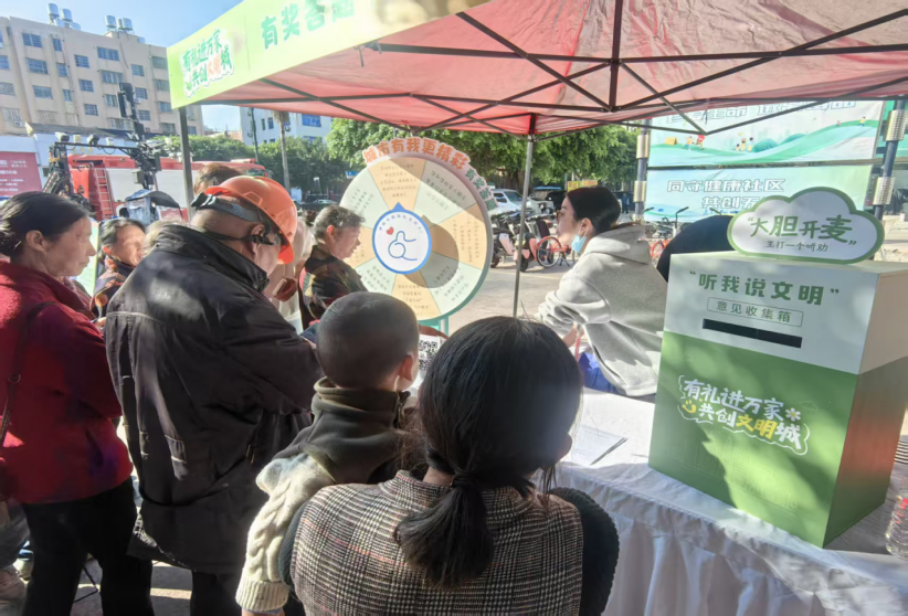 12月20日上午南门社区步行街,12月21日下午玉城双港社区吾悦广场前开展“有礼进万家 共创文明城”社区巡回活动。一辆承载着台州文明基因的湖蓝色的“文明大篷车”,将文明宣讲、便民服务与健康关怀“打包”送到居民家门口,让文明新风与暖心福利在欢声笑语中浸润人心。四大特色服务区域有序铺开,各单位各司其职、各展所长,为居民带来“一站式”优质服务。其中文明宣传区内设置文明上网宣传展示区,配合互动游戏,让网络文明在欢声笑语中深入人心。